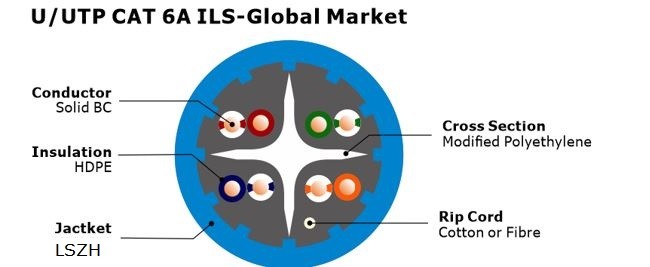 | Làm nổi bật: | Áo khoác LSZH U UTP CAT 6A,Cáp Ethernet Cat6a không được che chắn,Dây dẫn đồng U UTP CAT 6A |