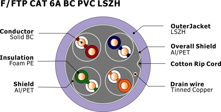 | Số lượng dây dẫn: | 4 cặp | Kiểu: | F/FTP cat6a |