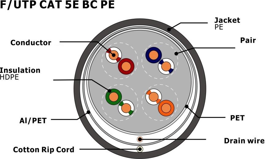 | Làm nổi bật: | FTP Shield CAT5E Ethernet Cable,PE Jacket Cat5e Shielded Cable |