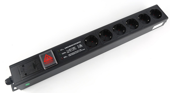 | PDU-7245329 ((ZC-1.5U06-K-3D-GER) | 1.5U 6 cách Cabinet PDU với Switch và ánh sáng 3D 250V,16A Đức |